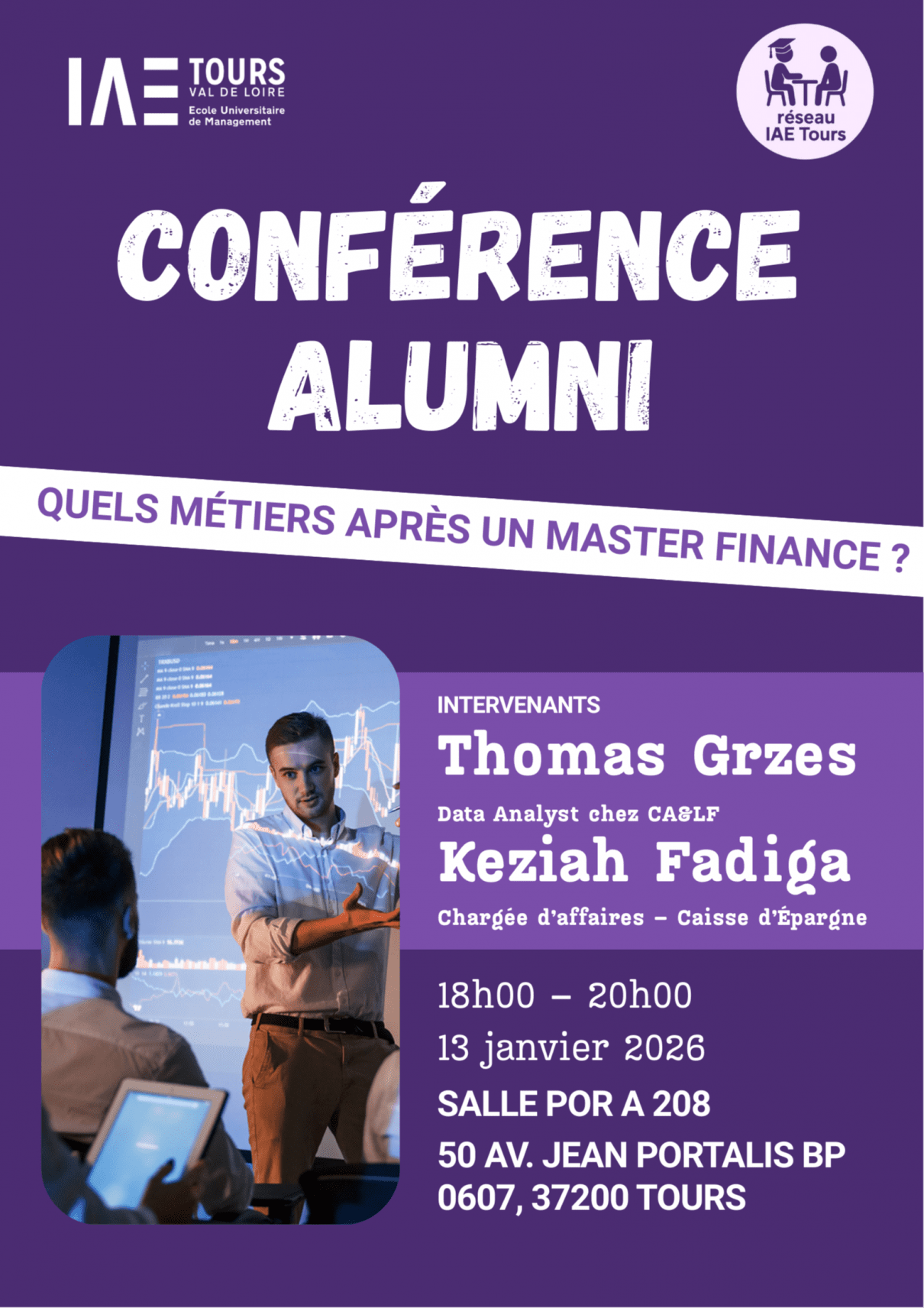 Cet événement, organisé par les étudiants du projet IAE Alumni, a pour objectif de créer un moment d’échange inspirant entre anciens et actuels étudiants autour des parcours en finance.